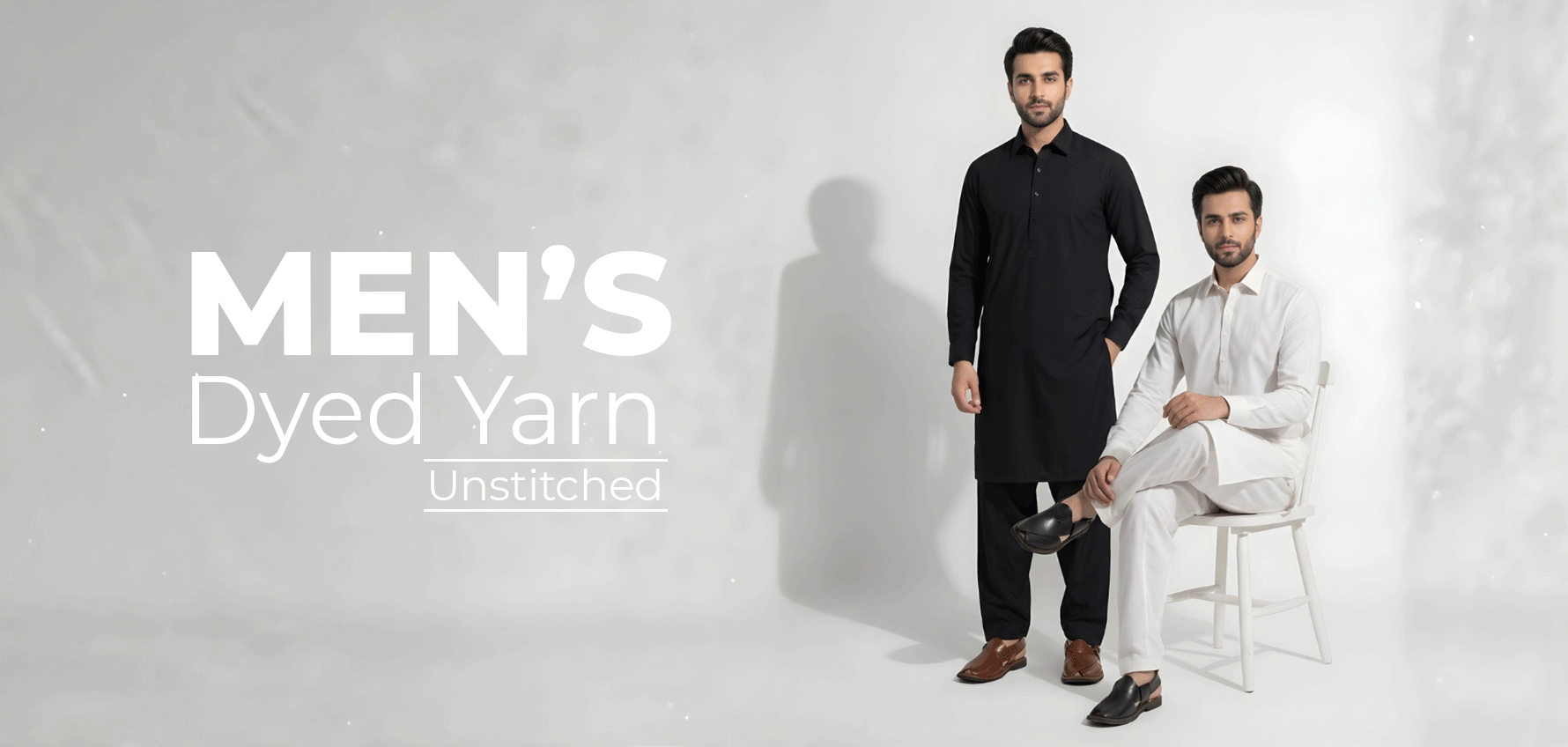 Men's Unstitched Dyed Yarn Summer Fits Ash White Suit